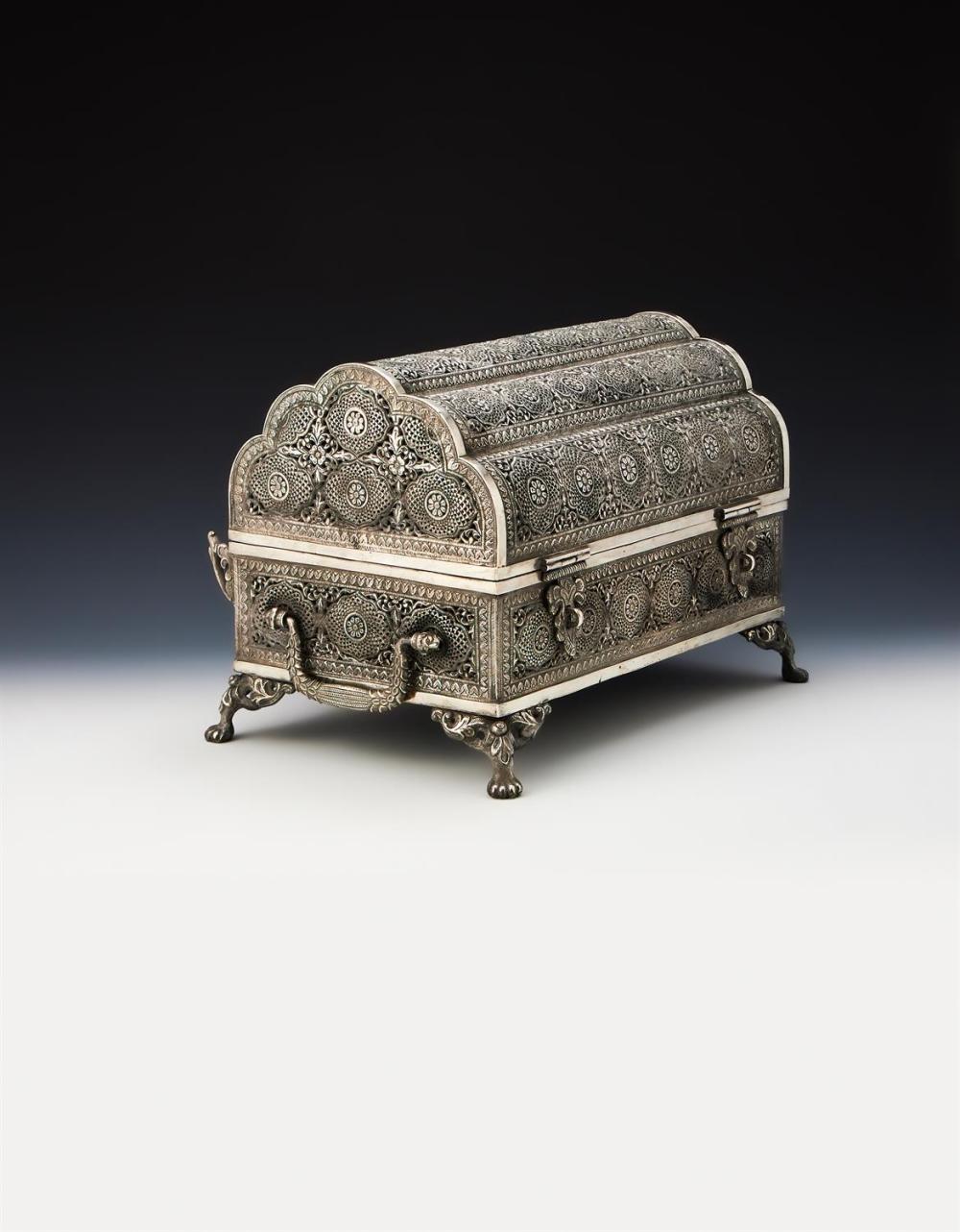 A LARGE INDIAN SILVER CASKET