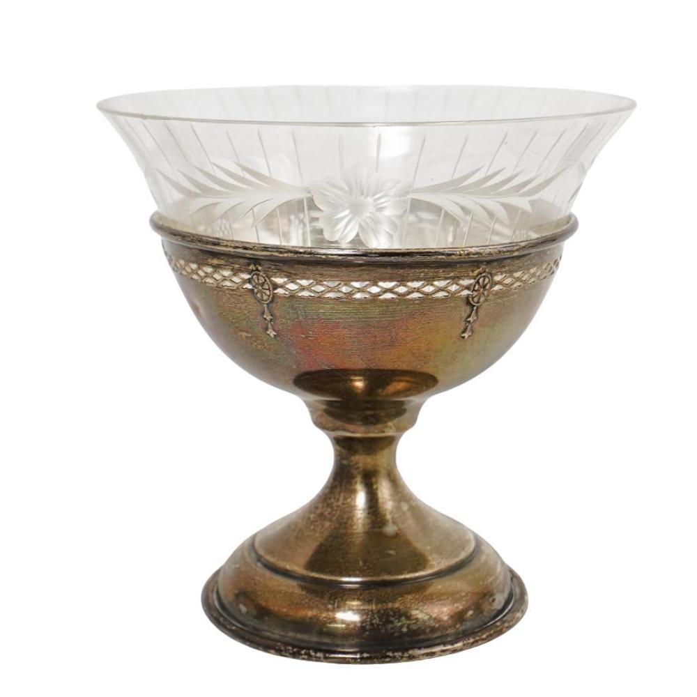 Antique International Sterling Silver Footed Cups w/ Etched Glass Inserts