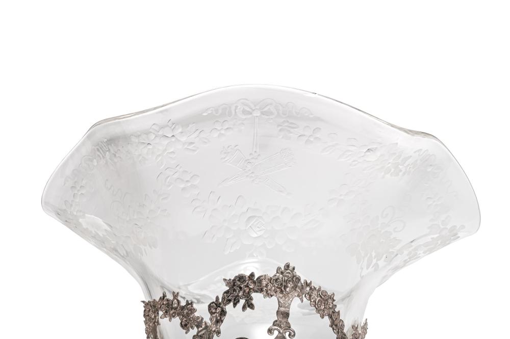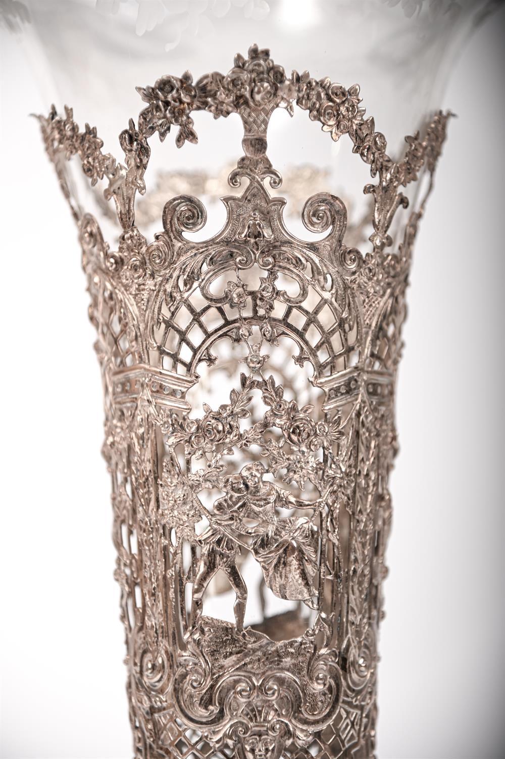 Continental Art Nouveau Silver Centrepiece with Cherubs and Glass Trumpet Liner, Circa 1900