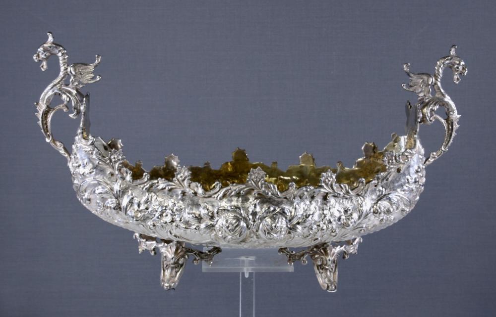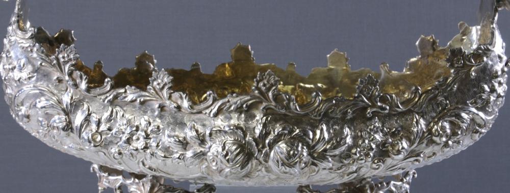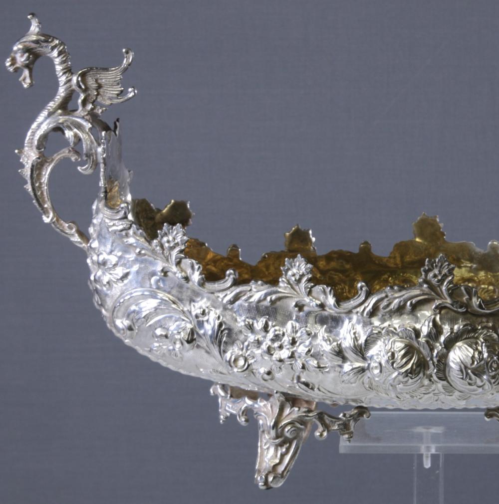 A substantial and visually striking object, this jardinière exemplifies the craftsmanship and ornamental richness of turn-of-the-century German silverwork.